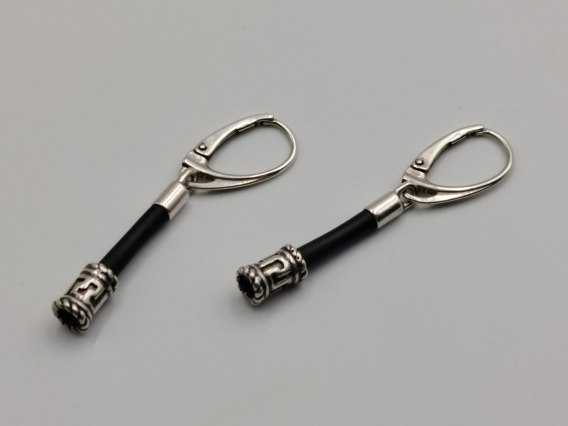 model / wzór: damskie srebrne kolczyki wiszące z dodatkiem kauczuku + delikatny wzorek u dołu