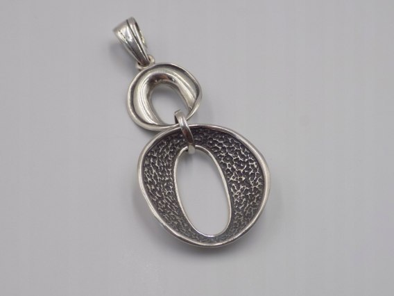 • nazwa: piękny, autorski, ciekawy, stary, srebrny, damski wisiorek / zawieszka składająca się z dwóch nieregularnych kółeczek - wykonana ze srebra próby 925 - biżuteria VINTAGE