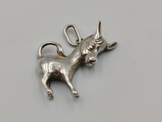 • nazwa: piękny, autorski, ciekawy, stary, srebrny, damski wisiorek / zawieszka " OSIOŁ / OSIOŁEK " - wykonana ze srebra próby 925 - biżuteria VINTAGE.