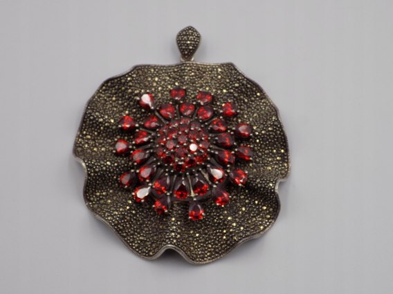 Dzisiaj w ofercie: stary, bajeczny, duży, piękny, srebrny, damski, wisiorek / zawieszka z czerwonymi cyrkoniami i markazytami - wykonany ze srebra 925 - biżuteria - VINTAGE.