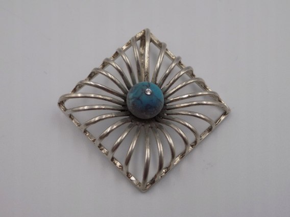 Dzisiaj w ofercie: stary, piękny, srebrny, damski, wisiorek / zawieszka KWADRAT - niebieski kamień + mała cyrkonia - wykonany ze srebra 925 - biżuteria.