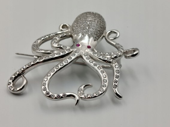 Dzisiaj w ofercie: piękna, ciekawa, autorska, damska, srebrna broszka OŚMIORNICA wykonana ze srebra próby 925 z dodatkiem cyrkonii - biżuteria.