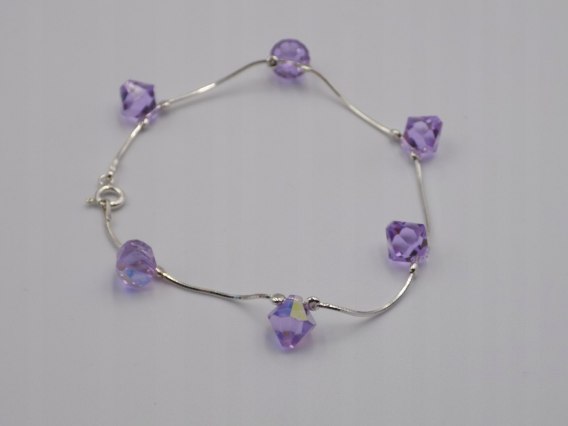• wzór / motyw: bransoletka damska z fioletowymi cyrkoniami