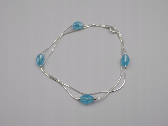 Piękna, srebrna, damska bransoletka - błękit niebieski srebro 925 biżuteria