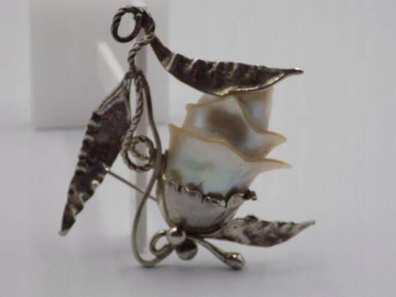 Dzisiaj w ofercie: piękna, stara, damska, srebrna broszka RÓŻA - MASA PERŁOWA -  wykonana ze srebra 925