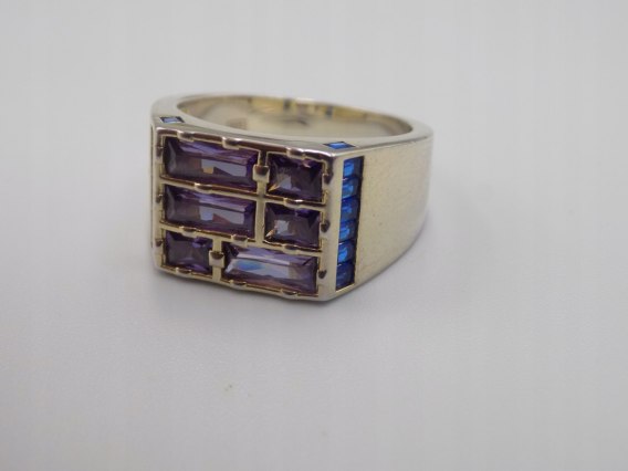 Dzisiaj w ofercie: piękny, autorski, ciekawy, srebrny, damski pierścionek / sygnet z ametystem, wykonany ze srebra, próby 925, w rozmiarze 16 - biżuteria damska EXCLUSIVE