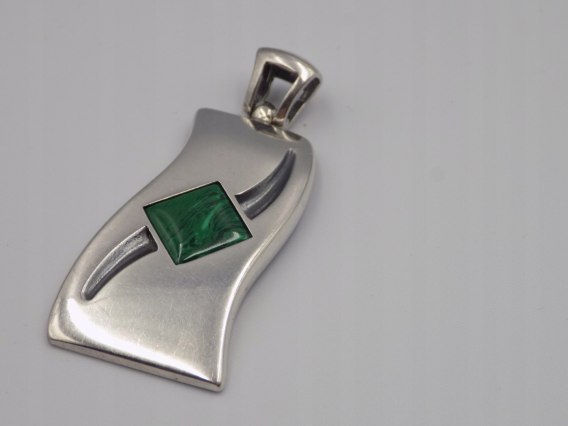 nazwa: piękny, duży, damski srebrny wisiorek / zawieszka z malachitem - srebro próby 925
