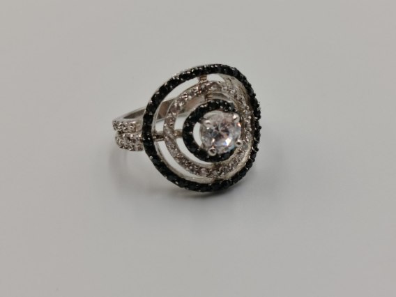 model / wzór: srebrny, damski pierścionek ażurowy z dodatkiem cyrkonii biało-czarnych