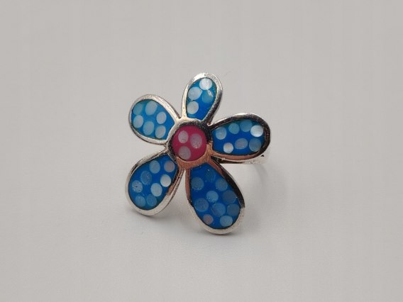 Dzisiaj w ofercie: piękny, autorski, ciekawy, srebrny, damski pierścionek KWIAT emalia wykonany ze srebra próby 925, w rozmiarze 17 / 18 - biżuteria.
