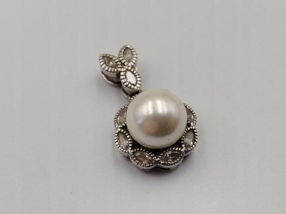 model / wzór: srebrny damski wisiorek / zawieszka perła i cyrkonie