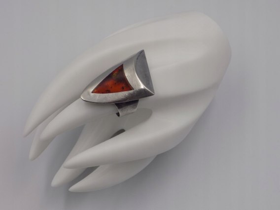 Dzisiaj w ofercie: stary, duży, damski, srebrny pierścionek z bursztynem, wykonany ze srebra próby 925, w rozmiarze 18