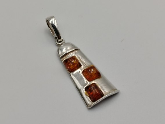 model / wzór: srebrny damski wisiorek / zawieszka w kształcie dzwonka z dodatkiem bursztynu