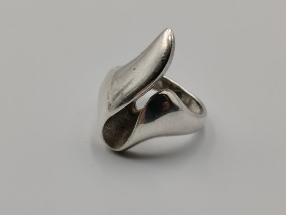 Dzisiaj w ofercie: piękny, stary, ciekawy, autorski, srebrny damski pierścionek asymetryczny - wykonany ze srebra próby 925, w rozmiarze 13 / 14 - biżuteria VINTAGE