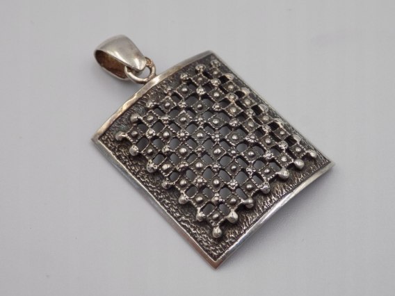 • nazwa: stary, damski, srebrny wisiorek / zawieszka KRATKA - srebro 925 - biżuteria