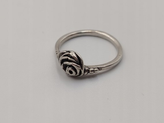 nazwa: piękny, stary, autorski, ciekawy, srebrny, damski pierścionek RÓŻA, wykonany ze srebra próby 925, w rozmiarze 16 - biżuteria VINTAGE