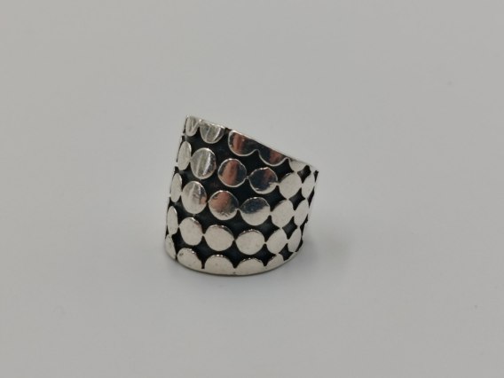 nazwa: piękny, stary, autorski, ciekawy, srebrny, damski pierścionek / obrączka KÓŁECZKA, wykonany ze srebra, w rozmiarze 10 / 11 - biżuteria VINTAGE