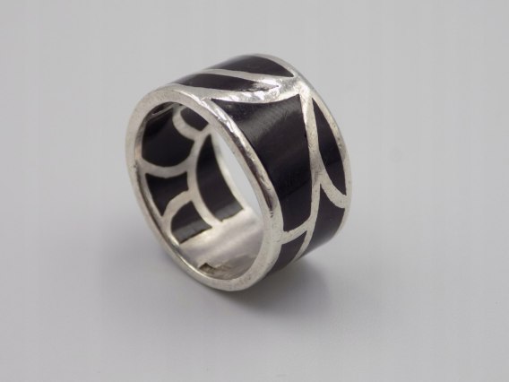 wzór / motyw: pierścionek / obrączka z dodatkiem czarnego akrylu