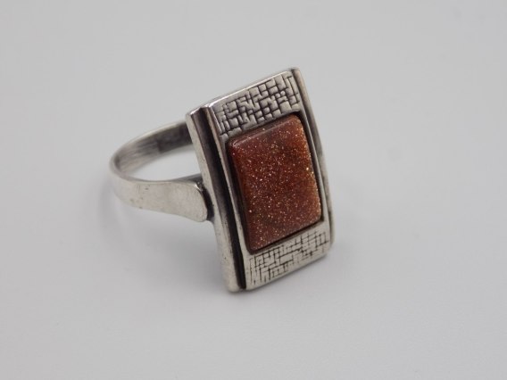Dzisiaj w ofercie: piękny, stary, srebrny, damski pierścionek z oczkiem PIASEK PUSTYNI - oksyda - wykonany ze srebra, w rozmiarze 14 - biżuteria VINTAGE