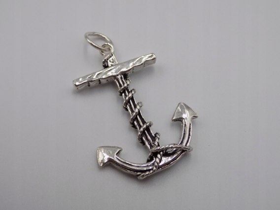 nazwa: piękny, stary, ciekawy, srebrny wisiorek / zawieszka KOTWICA - wykonana ze srebra - biżuteria VINTAGE
